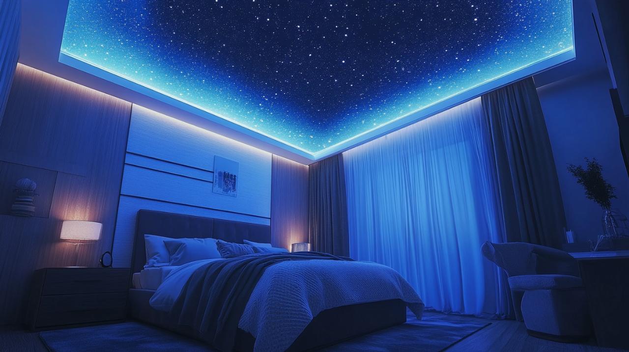 With the fibres or lights in place and the connections secure, you can now mount the prepared panel to your bedroom ceiling. Position the board carefully, aligning it with the area you measured earlier, and secure it using appropriate fixings such as screws or brackets. Ensure the panel is level and firmly attached to prevent any risk of it coming loose over time. Cover the screw heads with felt dots or decorative caps to maintain a clean, polished look on the visible side of the ceiling. Once the panel is mounted, turn on the light engine and step back to admire your handiwork. Adjust the brightness and colour settings using the remote control to find the perfect ambiance for your bedroom. If you have followed a star map, take a moment to identify the constellations you have recreated and appreciate the accuracy of your work. If you opted for a random pattern, enjoy the abstract beauty and the sense of calm it brings to the room. To enhance the effect further, consider adding extra finishing touches such as glow-in-the-dark paint for planets or nebulae, which can complement the fibre optic stars and add depth to your starry night sky. You might also experiment with different colours of light, using the remote to switch between warm whites, cool blues, or even subtle purples to simulate the varied hues of the cosmos. If you have prepared two independent panels with a single kit, you can create a layered effect by installing them at different levels or in adjacent sections of the ceiling, adding complexity and visual interest. Remember that the light engine may require occasional maintenance, so ensure it remains accessible without disrupting the overall aesthetic. If you plan to install the system in a bathroom or sauna, take extra precautions to protect the light engine from moisture by placing it in a sealed, ventilated housing or outside the high-humidity zone. Testing the system thoroughly before finalising the installation will help you identify any issues early and ensure that your starry ceiling functions flawlessly for years to come. The entire process, from initial planning to final adjustments, is a rewarding DIY endeavour that transforms your bedroom into a personal sanctuary under the stars, offering a daily reminder of the beauty and wonder of the night sky.
